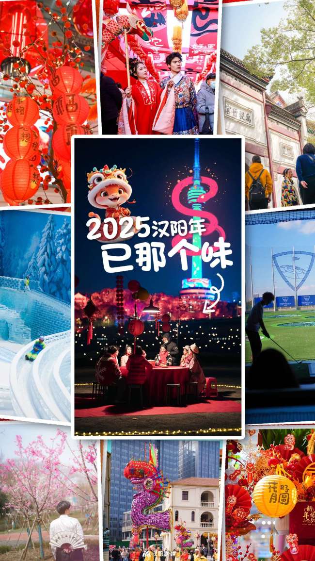 作為“春節(jié)”申遺成功后的首個中國年,漢陽各個活動點(diǎn)位節(jié)日氛圍拉滿,漢服巡游、舞獅糖畫、木偶劇、非遺手工技藝等各式體驗(yàn)琳瑯滿目,精彩紛呈,感受滿滿中國年味。遠(yuǎn)洋里(鸚鵡大道和翠微路交匯處)主會場將打造“蛇么都好”——2025新春歸元廟會,新春市集涵蓋年貨特賣、非遺文化體驗(yàn)、特色美食品鑒等,還有巨型“抱抱球”、蛇年好運(yùn)相框等打卡點(diǎn)等你拍照。龜山風(fēng)景區(qū)攜手玄武文化,開啟“玄武慶歲華——龜山新春祈福之旅”主題活動。體驗(yàn)一場尋找仙人遺跡、解開古老謎團(tuán)的冒險(xiǎn)之旅,快樂迎新春。
