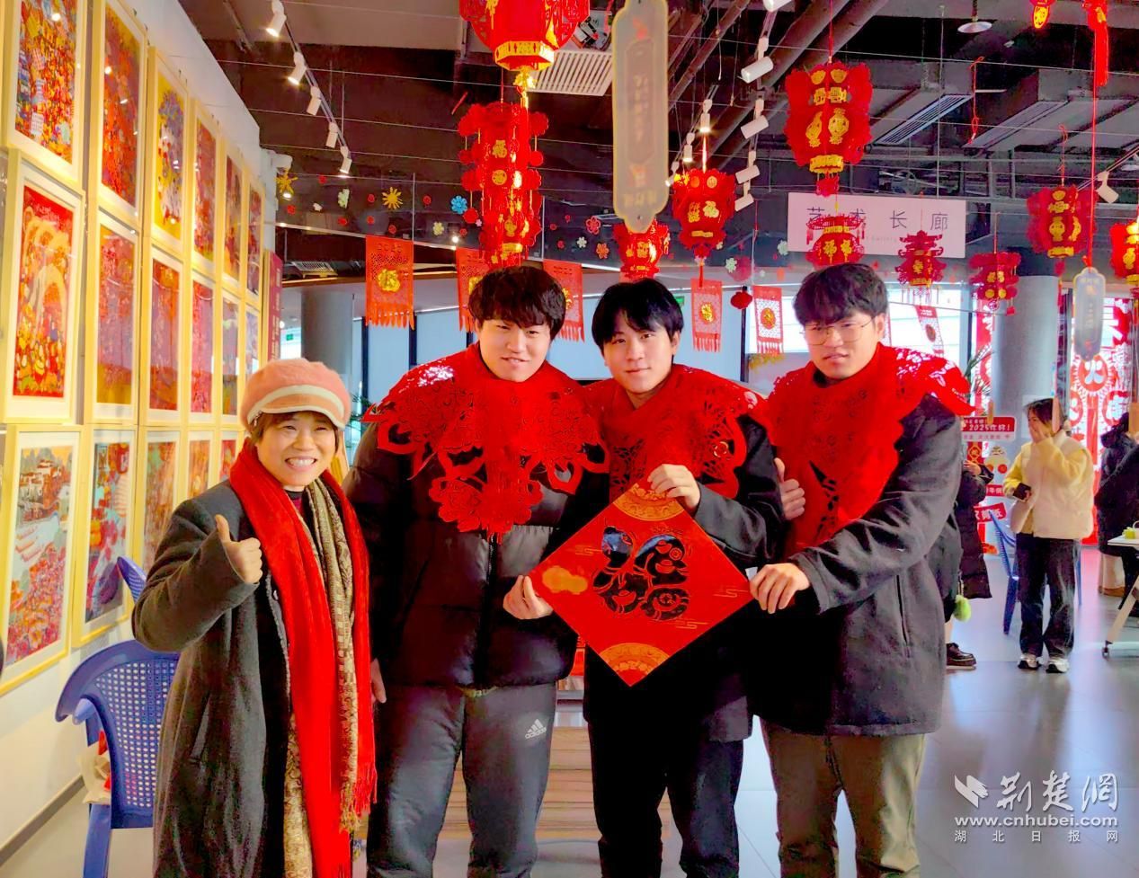 臺灣媽媽陳敏惠目前在武漢經(jīng)營翔和口腔診所。體驗非遺版畫和剪紙后,她對精巧的非遺贊嘆不已,直言此次武漢過年十分精彩、“年味足”。結束后,她將剪紙作品佩戴在三個兒子身上合影留念,稱紅色剪紙寓意吉祥,承載著對孩子們的新年祝福,“我覺得剪紙滿是福氣的意味,這樣新年才有新希望。”