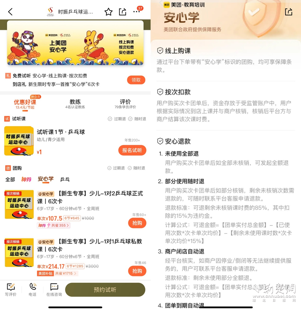 杭州時(shí)振乒乓球運(yùn)動中心是第一批參與美團(tuán)“安心學(xué)”的體培機(jī)構(gòu)。負(fù)責(zé)人徐振華表示,2025開年的招生過程中,最大的挑戰(zhàn)就是家長對機(jī)構(gòu)的信任度,比如在買單時(shí),家長們比往年更為猶豫,擔(dān)心機(jī)構(gòu)是否會跑路、是否賣的是小課包等,甚至有家長詢問“是否可以一節(jié)課一節(jié)課付費(fèi)”。