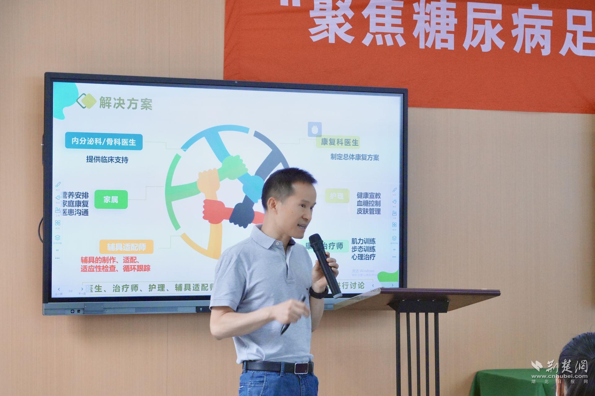 現(xiàn)場,來自武漢大學(xué)中南醫(yī)院內(nèi)分泌科、神經(jīng)外科、康復(fù)科等多學(xué)科的專業(yè)醫(yī)師輪番登臺,從糖尿病足的病理機制講到最新治療技術(shù)、從傷口護理講到居家管理技巧,深入淺出、緊貼實際,引發(fā)現(xiàn)場不少聽眾的共鳴與提問。