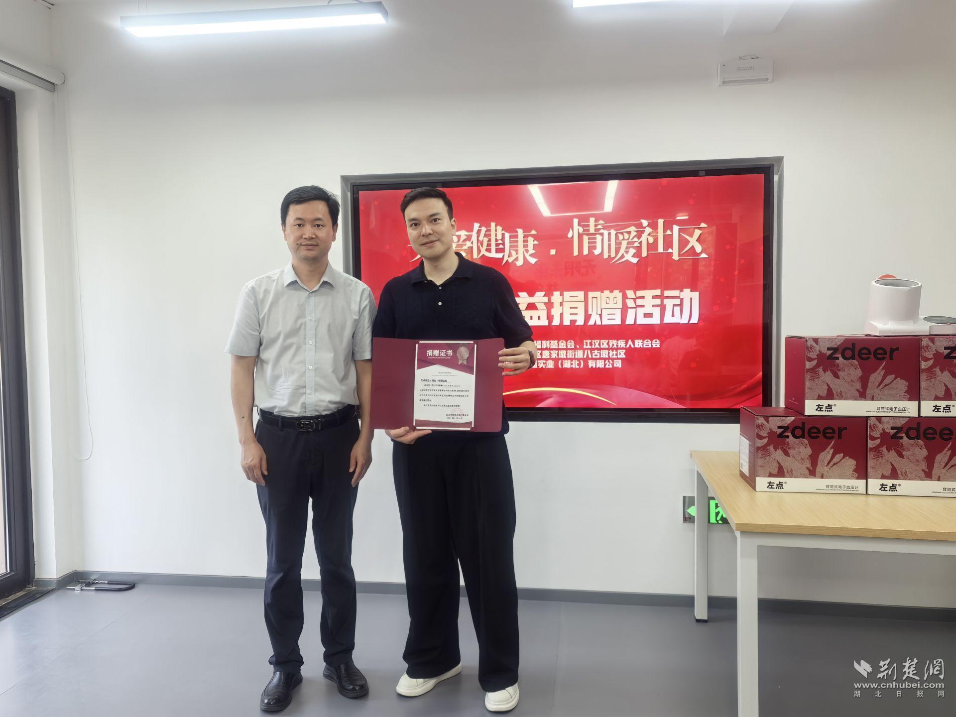 活動現(xiàn)場,武漢市殘聯(lián)副理事長姚志剛向左點實業(yè)頒發(fā)榮譽證書,并高度肯定了此次公益行動。他指出,這不僅是一次捐贈,更是一種合作共建的嘗試,企業(yè)的技術(shù)與資源,社區(qū)的需求與觸點,共同構(gòu)建起一個小而強的“公益閉環(huán)”,讓愛心不再流于形式,而是落地生根。