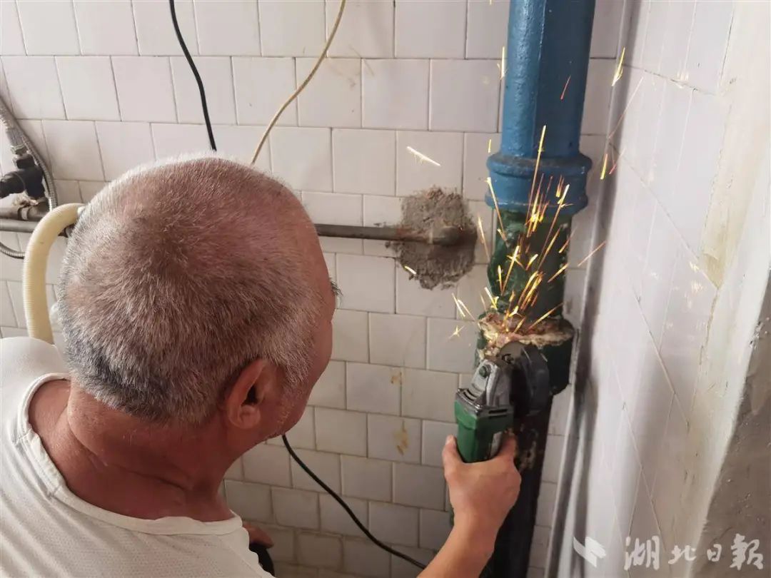 △周重書為居民維修水管。圖源湖北日報(bào)。