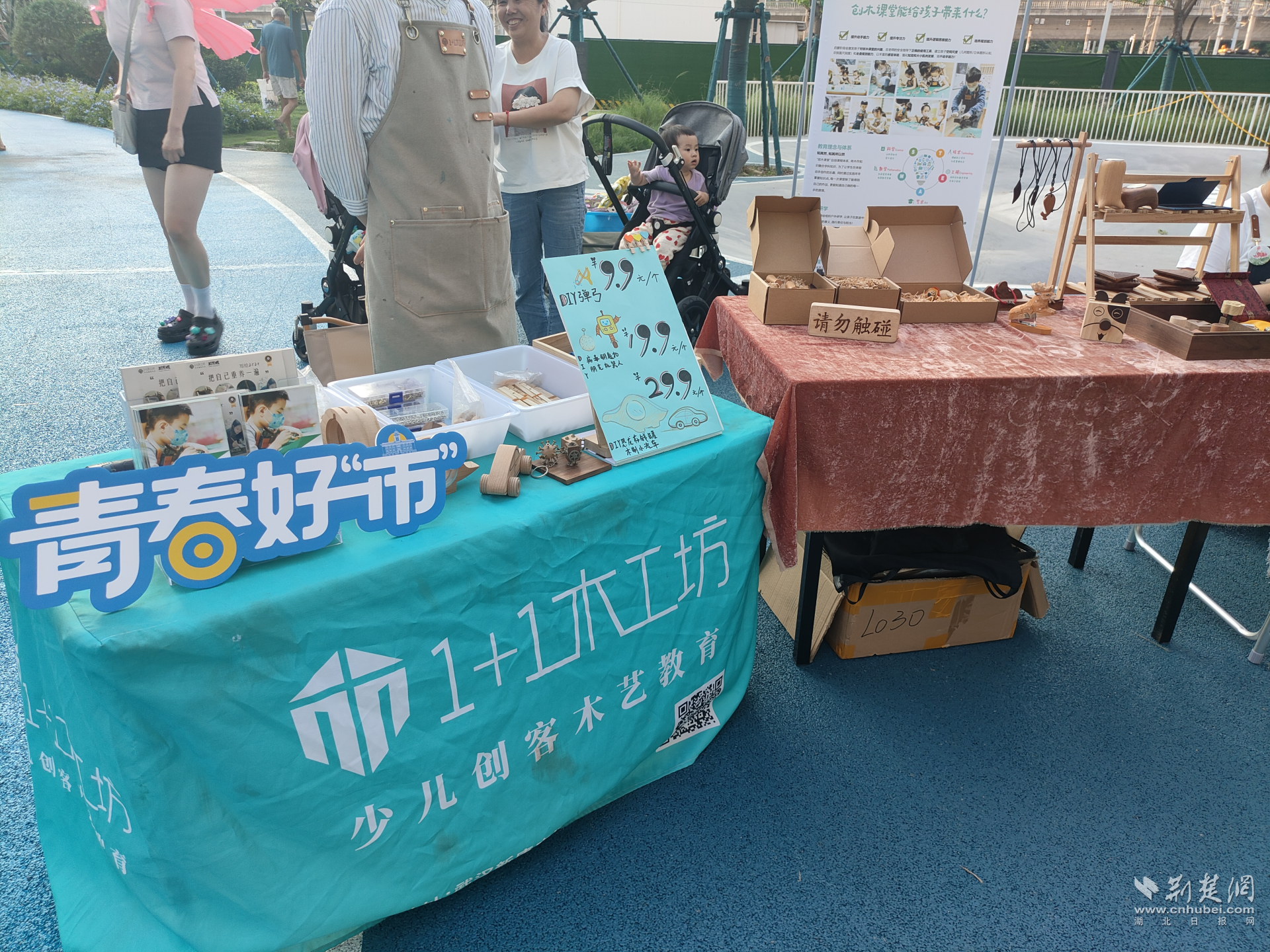另一頭的創(chuàng)意市集同樣人氣爆棚,來自“鄰樂社”“鄰犀社”的青年們各顯神通。