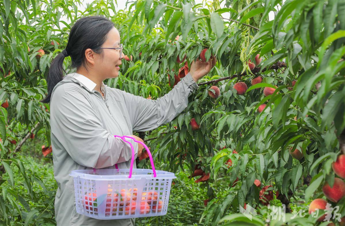6月10日,游客在卓爾桃花驛小鎮(zhèn)采摘蜜桃。(湖北日報通訊員 陳超 攝)