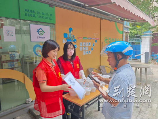 “師傅,喝瓶冰水,記得防暑啊?!被顒?dòng)現(xiàn)場(chǎng),紅馬甲志愿者將冰鎮(zhèn)礦泉水、藿香正氣液、降溫貼等防暑用品一一遞到外賣員、快遞小哥和環(huán)衛(wèi)工人手中。為了照顧騎手等餐時(shí)間短、流動(dòng)頻繁的特點(diǎn),社區(qū)提前將綠豆湯和糕點(diǎn)送至暖新驛站,實(shí)現(xiàn)“人找貨”變“貨找人”,當(dāng)天共為50多位戶外勞動(dòng)者送上了這份貼心清涼。