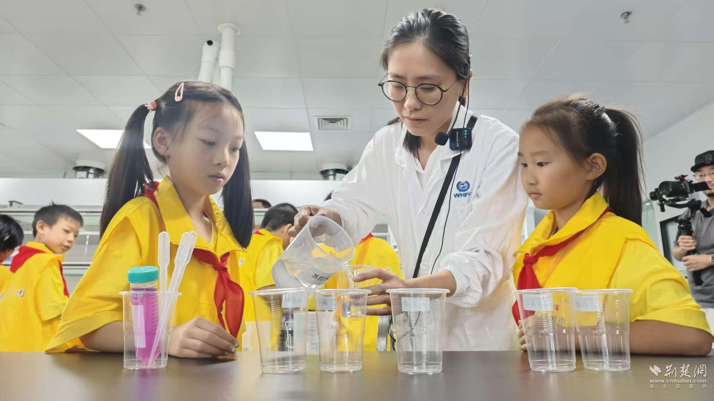 在科普基地實(shí)驗(yàn)室,小朋友動(dòng)手做起了“變身吧,花青素”小實(shí)驗(yàn)。