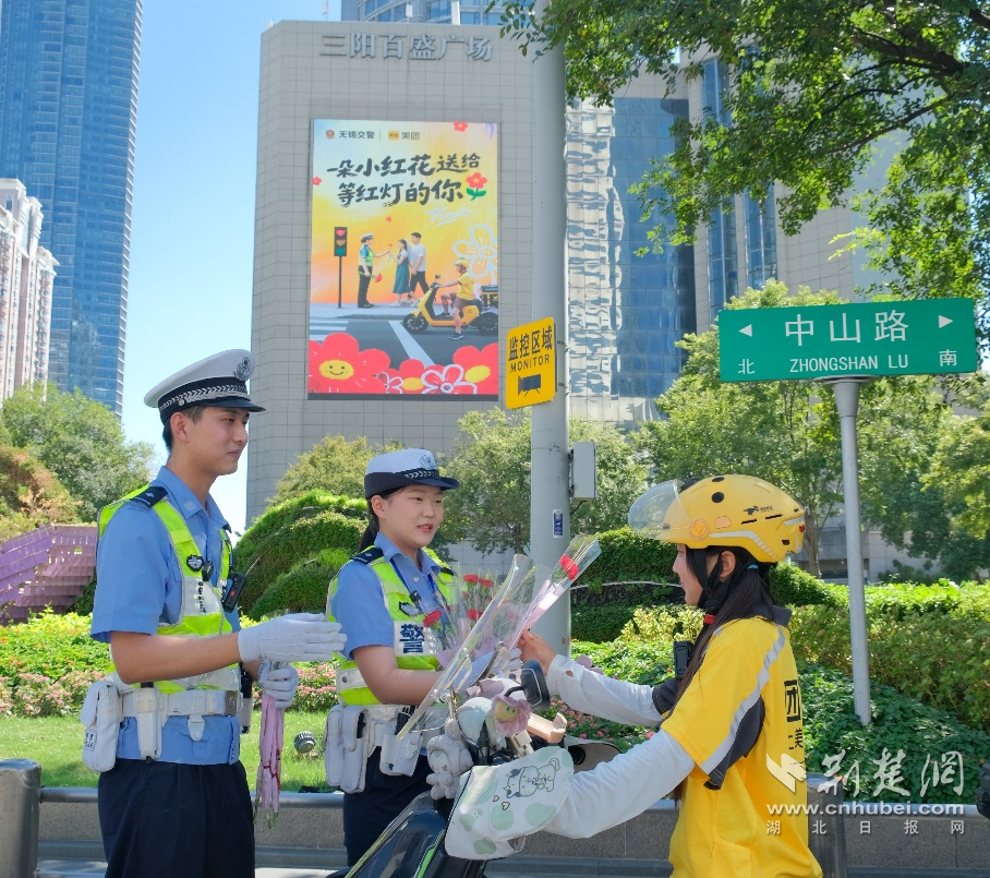 荊楚網(wǎng)(湖北日?qǐng)?bào)網(wǎng))訊(通訊員小雨)8月29日七夕當(dāng)天,美團(tuán)在西寧、鄭州、蘭州、深圳、武漢等全國(guó)16座城市同步發(fā)起“送你一朵小紅花”交通安全倡導(dǎo)行動(dòng)。各城市交警在十字路口、斑馬線前為遵守交通規(guī)則的騎手和市民送上鮮花及反光貼紙,傳遞“安全出行”理念?;顒?dòng)現(xiàn)場(chǎng),近萬(wàn)人領(lǐng)取到倡導(dǎo)交通安全文明的“小紅花”。據(jù)了解,這是美團(tuán)在全國(guó)發(fā)起的騎手交通安全正向激勵(lì)系列活動(dòng)之一,旨在推動(dòng)騎手交通安全意識(shí)提升與權(quán)益保障的常態(tài)化。