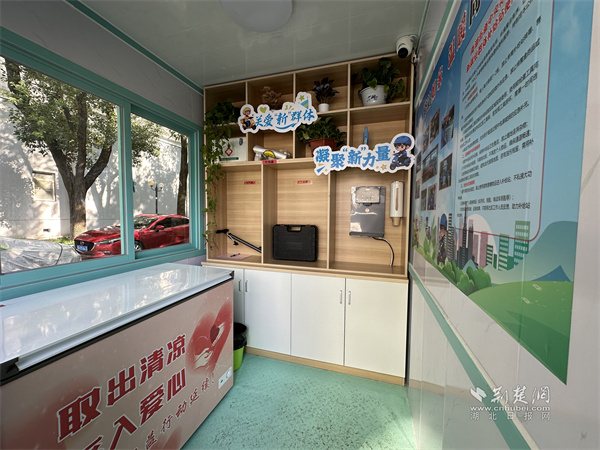 社區(qū)在北大門入口處設(shè)立的“暖心補給站”,成了小哥們的“能量加油站”。拉開補給站的冰柜,冰爽的礦泉水整齊擺放;醫(yī)藥箱里,創(chuàng)可貼、碘伏、藿香正氣水等應(yīng)急藥品一應(yīng)俱全;維修工具箱和電動打氣筒已幫十多位小哥解決過電動車爆胎、零件松動的難題;打包袋也方便了小哥臨時更換破損外賣包裝?!跋奶焖屯瓴?,來這兒取瓶冰水,渾身的燥熱都散了,心里也涼快!”快遞小哥王師傅邊說邊拿起一瓶水,臉上滿是滿足。