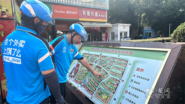 此外,社區(qū)還貼心優(yōu)化配送環(huán)境。小區(qū)出入口立起全景圖立牌,清晰標注配送路線和臨時停車位;主干道增設(shè)24個指引牌,44棟樓都裝上了夜光樓棟牌,路口盲區(qū)的凸面反光鏡,守護著小哥的騎行安全。不僅如此,社區(qū)還經(jīng)常組織小哥們開展活動,盛夏送清涼時,遞上防暑物資;趣味運動會上,一起玩“大錘打氣球”“摸石過河”,歡聲笑語中拉近了彼此的距離。