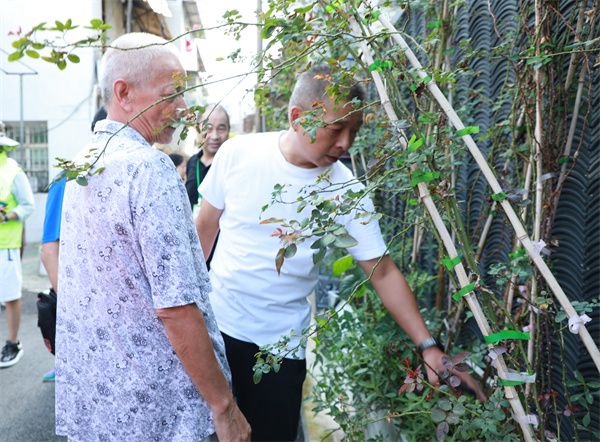 不過半小時,原本雜亂的屋頂花園已大變樣——月季枝條疏朗有致,凌霄花形態(tài)規(guī)整,各類花草錯落分明,透著勃勃生機(jī)??粗矍暗某晒?,龔吉條笑著說:“這趟來得值!又是開眼界又是學(xué)技巧,回去就能用到社區(qū)里,讓我們的小花園也變個樣!”