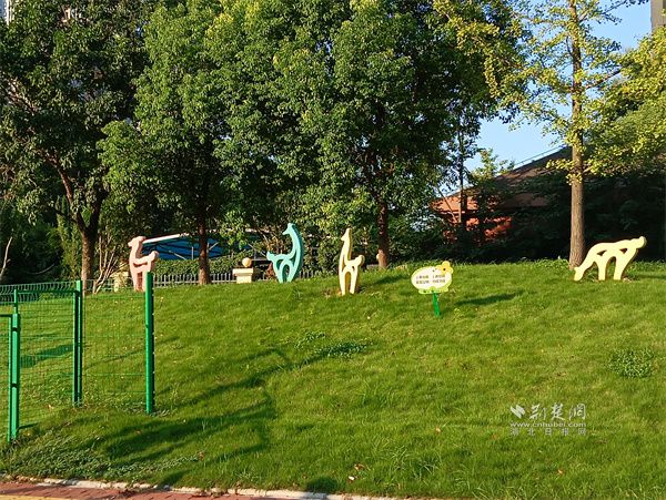 在小區(qū)健身苑的草坡上,16座3D打印的微景觀成了新晉網(wǎng)紅。小人演繹運(yùn)動(dòng)姿態(tài)、梅花鹿低頭飲水、蝸牛馱著貝殼爬行……這些景觀制作原料竟是建筑垃圾?!耙郧斑@些材料只能填埋,現(xiàn)在成了會(huì)講故事的環(huán)保教具?!鄙鐓^(qū)黨委書(shū)記姚望介紹,通過(guò)固廢基材料3D打印技術(shù),建筑渣土經(jīng)粉碎重組后重獲新生,既節(jié)省傳統(tǒng)建材成本,又減少土地占用。居民李月梅感慨:“帶孩子遛彎時(shí),這些‘低碳代言人’自然就成了環(huán)保課堂。”
