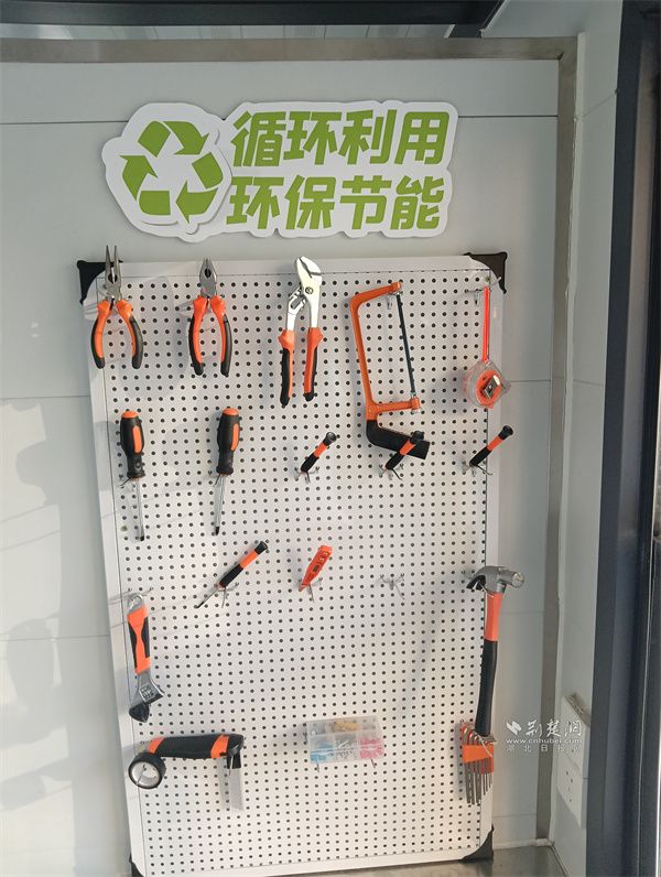 曾經(jīng)用于疫情防控的核酸亭也煥發(fā)新生,貼上新膜、掛上“堤”碳小屋招牌后,這里成了社區(qū)共享空間。工具架上擺放著扳手、螺絲刀等共享工具,展示柜里陳列著奶粉罐改造的多肉花盆、舊牛仔褲縫制的時(shí)尚挎包。不少居民自豪地說(shuō):“在我們這兒,垃圾能變寶藏!”