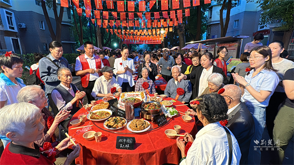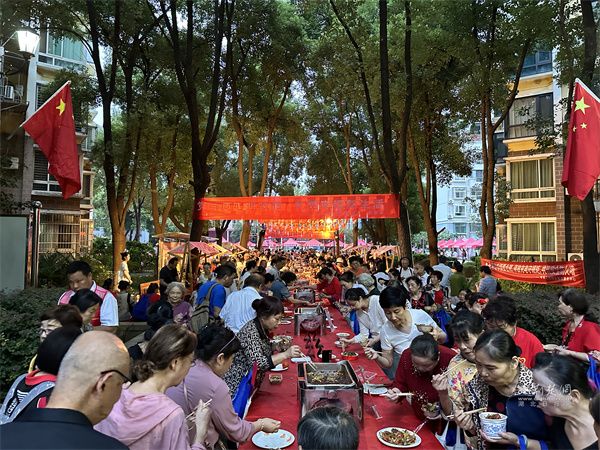 鄰里關(guān)系的升溫,離不開(kāi)有溫度的聯(lián)結(jié)。如今城市里的單元樓,常隔著“一扇門的距離”,而社區(qū)的百家宴,恰好打破了這份疏離。紅燒排骨、手工餃子、梅菜扣肉,百余道家常菜擺成長(zhǎng)桌,陌生鄰里因一道菜打開(kāi)話匣子,老街坊借一碗湯嘮起家常;10位高齡老人與祖國(guó)同慶生,全場(chǎng)齊唱的《生日歌》里,藏著對(duì)長(zhǎng)輩的敬重,也裹著“社區(qū)是家”的歸屬感。比起刻意的破冰活動(dòng),這樣帶著煙火氣的相聚,更能讓鄰里情在自然中流淌。