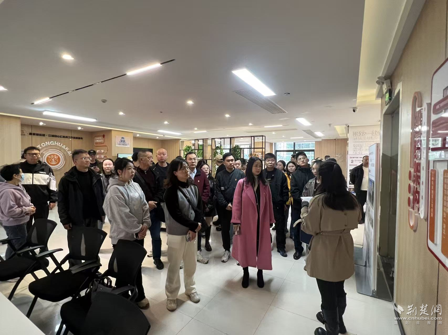 在理論學習之后,黨員們實地參觀了唐家墩街道“紅領驛站”。該驛站集黨員教育、服務群眾、文化交流于一體,是街道打造的黨建特色陣地。