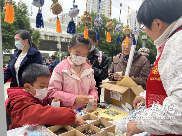 體驗(yàn)區(qū)里,社工帶領(lǐng)孩子們動(dòng)手制作茱萸香囊,講述“佩茱萸祈福避災(zāi)”的古老風(fēng)俗。孩子們捧著親手做好的香囊,迫不及待地想送給家里的長(zhǎng)輩。公益集市的人氣更是高漲,非遺絨花攤位展示傳統(tǒng)之美,慈善義賣匯聚鄰里愛(ài)心,植物醫(yī)生攤位傳遞健康養(yǎng)生理念。