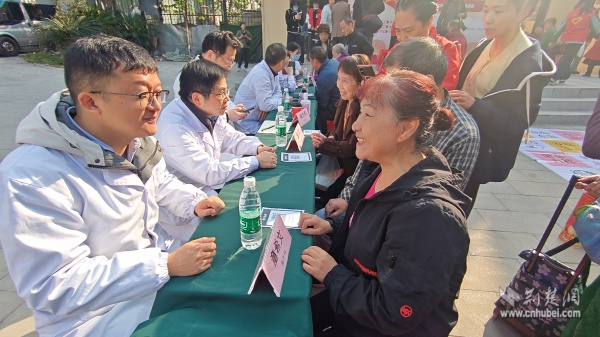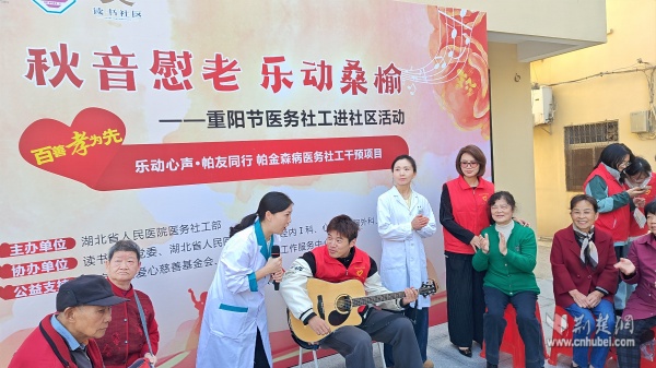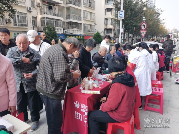 黃鶴書房外,由社區(qū)聯(lián)合武漢大學(xué)人民醫(yī)院共同舉辦的“秋音慰老,樂動(dòng)桑榆”主題活動(dòng)別具特色,融合健康義診、傳統(tǒng)美食、趣味游藝于一體。