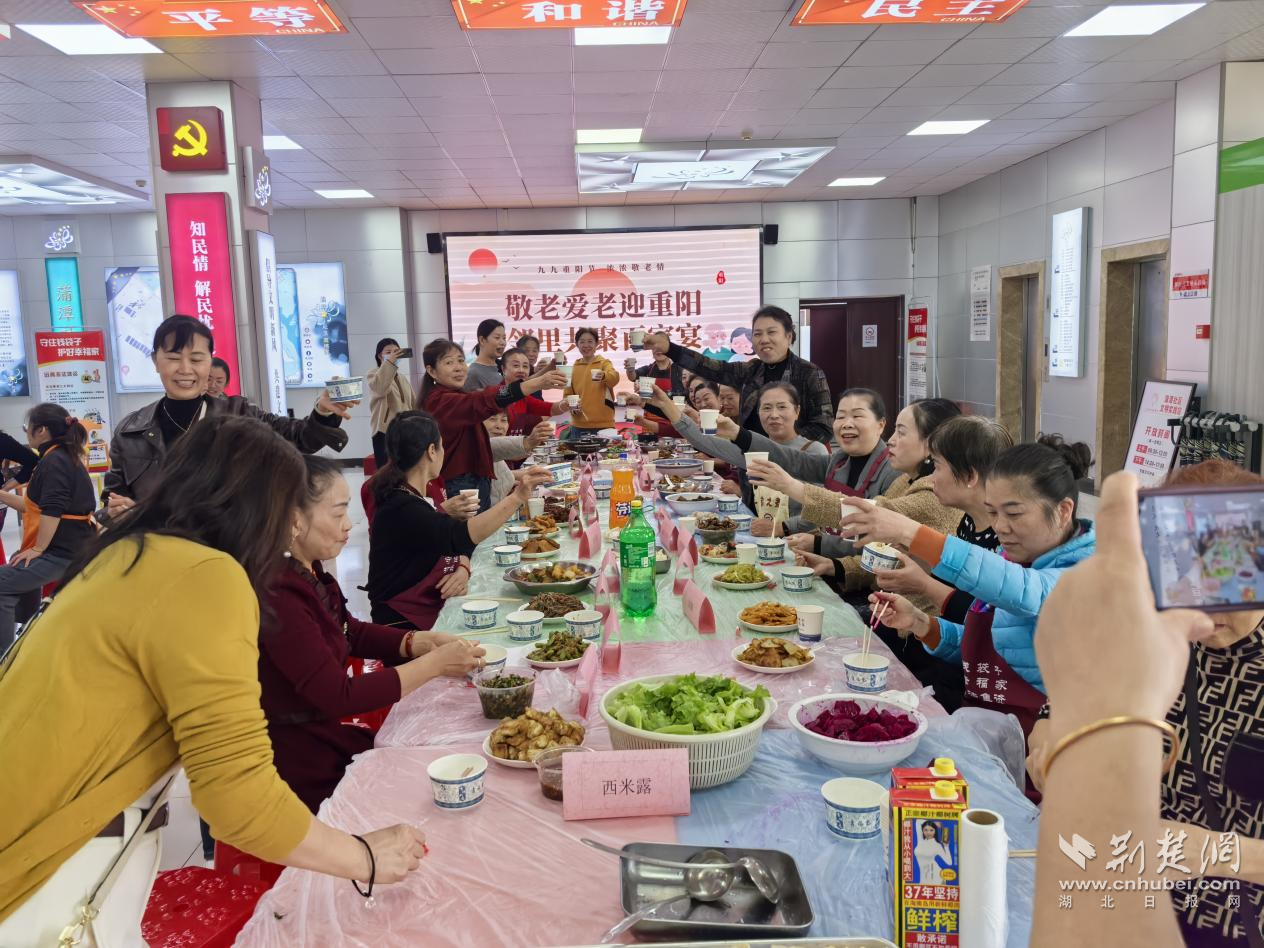當天上午,蒲潭社區(qū)老年學(xué)校與居家養(yǎng)老服務(wù)中心以“敬老愛老迎重陽,鄰里共聚百家宴”為主題,舉辦了一場熱鬧的重陽百家宴活動。為廣大老年居民送上第一份“暖心禮”。社區(qū)居民歡聚一堂,煮餃子、炸雞冠餃,品佳肴、唱歡歌,共慶佳節(jié)。