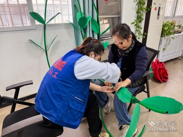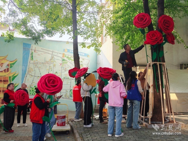 這棵“愛之樹”是街道殘聯(lián)聯(lián)合西廠口社區(qū)開展的“杏運相伴,玫好家園”殘健融合公共藝術共創(chuàng)活動的成果,轄區(qū)陽光家園學員、助殘志愿者、居民代表和社區(qū)工作者共同參與,以親手制作的巨型銀杏葉與玫瑰花裝點社區(qū)空間,傳遞“黃鶴樓下是我家”的溫暖。