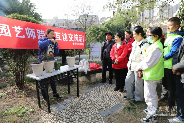 江漢區(qū)民權(quán)街道打銅社區(qū)園藝師辛高爐分享植物養(yǎng)護(hù)經(jīng)驗。 通訊員供圖