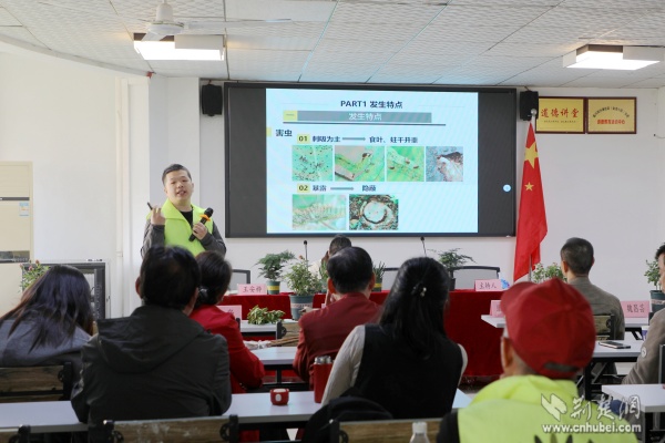 武漢市園林科學(xué)研究院工程師裴張新帶來秋冬季病蟲害防治小課堂。 通訊員供圖