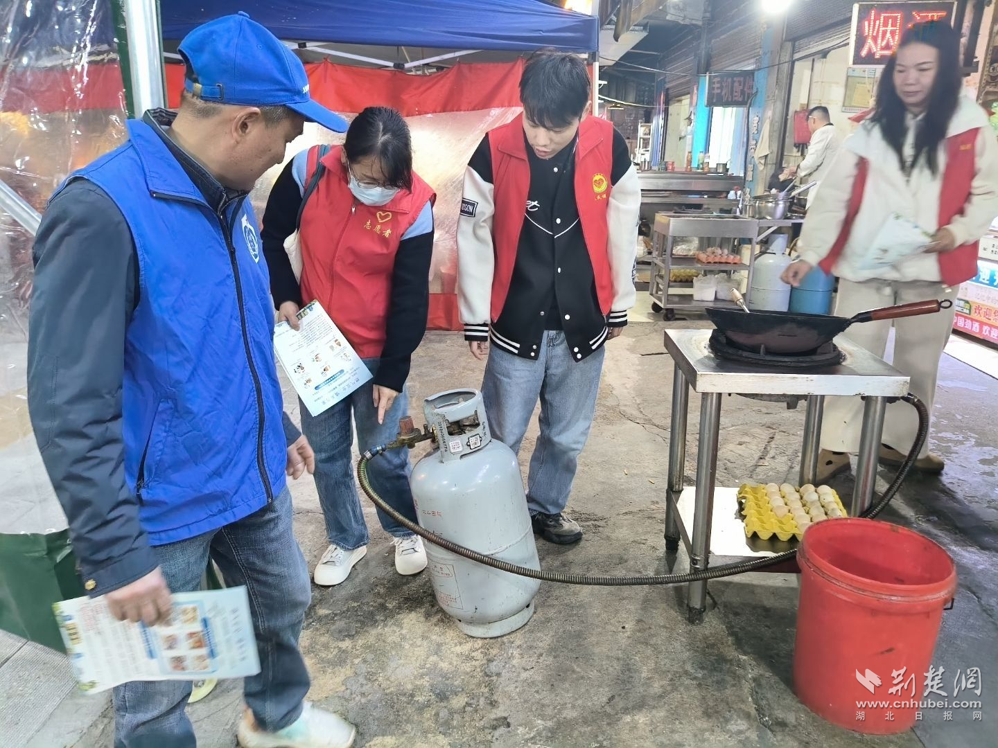 聯(lián)合排查小組深入轄區(qū)商戶指出燃氣消防存在問題。通訊員供圖