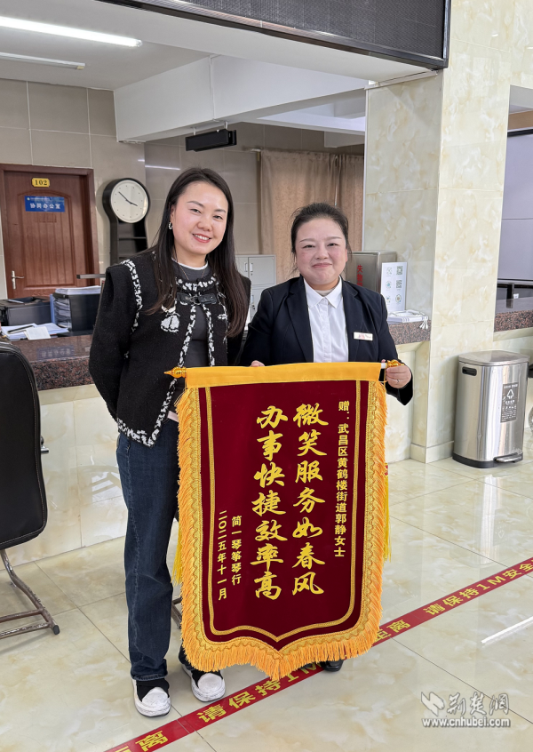 荊楚網(wǎng)(湖北日報網(wǎng))訊(通訊員劉麗)近日,武昌區(qū)黃鶴樓街道便民服務(wù)中心工商窗口上演了暖心一幕。一位商戶代表將一面書寫著“微笑服務(wù)如春風,辦事快捷效率高”的錦旗,鄭重送到工作人員郭靜手中,對她即使在生病住院期間仍堅持線上為商戶排憂解難的敬業(yè)精神表達誠摯謝意。