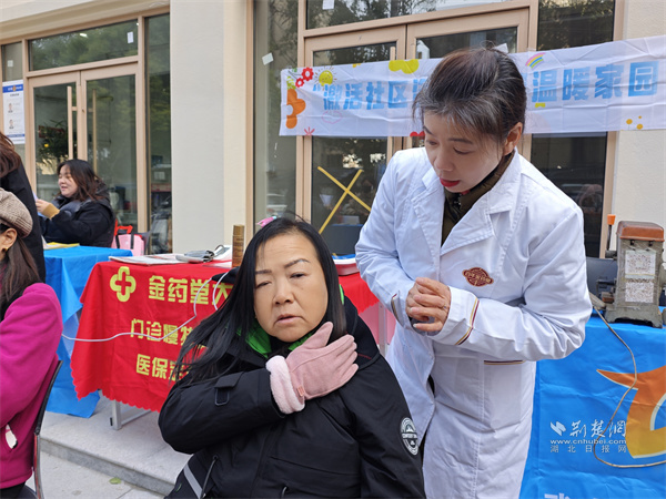 醫(yī)師與居民交流肩頸問題。 通訊員供圖