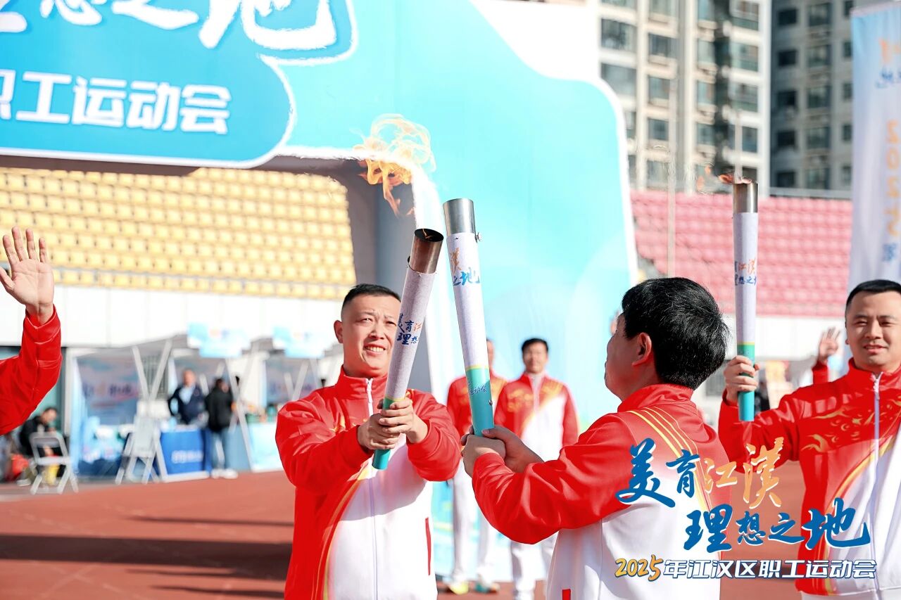 現場,“新興之火”“數智之火”“金融之火”“樞紐之火”“人文之火”五棒火炬依次點亮,張裕、付俊、邵青、張寶劍、孟廣松等15位勞模代表接力傳遞。燃燒的火焰,照耀著江漢區(qū)在科技創(chuàng)新、數字化轉型、金融強區(qū)、商貿物流、文商體旅融合等發(fā)展領域堅定向前。當所有火炬手共同點燃主圣火盆,彩球騰空,全場沸騰,運動會正式開幕。