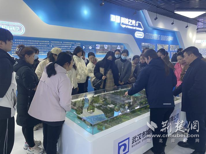 走進(jìn)北湖污水處理廠,現(xiàn)代化設(shè)施井然有序。水流穿管而過,光伏板鋪展在廠區(qū)上方。廠黨支部副書記夏可向?qū)W員們介紹了項目建設(shè)與運(yùn)營情況。這一工程是武漢“四水共治”和“長江大保護(hù)”的重要支點(diǎn),具備日處理80萬噸污水、服務(wù)超過240萬人的能力。通過“光伏+水務(wù)”“污水再生利用”等模式,北湖廠展示了生態(tài)文明建設(shè)的創(chuàng)新路徑。