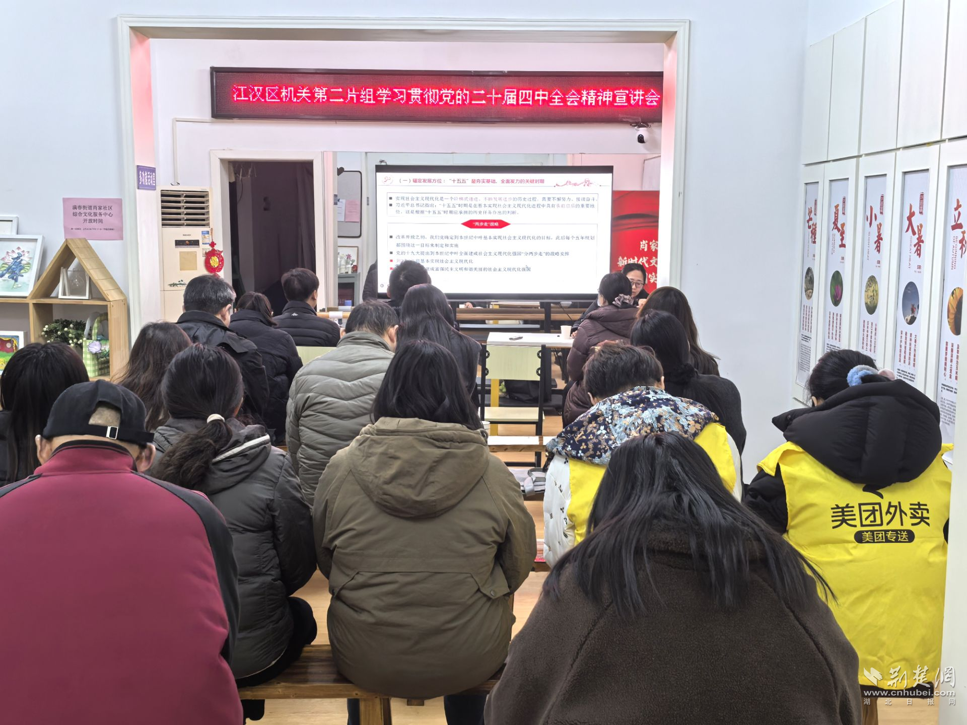 荊楚網(wǎng)(湖北日?qǐng)?bào)網(wǎng))訊(記者 何婧 通訊員 沈力)12月17日,在江漢區(qū)委直屬機(jī)關(guān)工委指導(dǎo)下,區(qū)委社會(huì)工作部機(jī)關(guān)黨支部召集區(qū)直機(jī)關(guān)黨建聯(lián)系第二片組單位,聯(lián)合滿春街道肖家社區(qū)黨委,舉辦學(xué)習(xí)貫徹黨的二十屆四中全會(huì)精神宣講會(huì)暨“基層治理 人人有責(zé)”專(zhuān)題研討活動(dòng)。區(qū)人大、區(qū)委組織部等9家成員單位黨員代表,以及新興領(lǐng)域黨員代表齊聚一堂,共學(xué)全會(huì)精神、共話治理實(shí)踐。