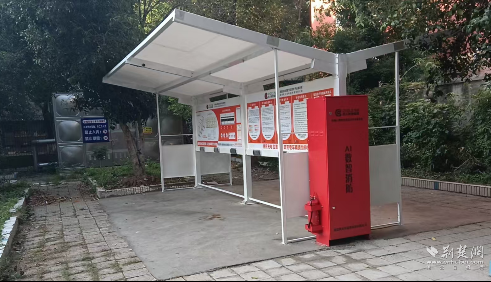 教師小區(qū)內(nèi)新建的智能充電車(chē)棚。通訊員供圖