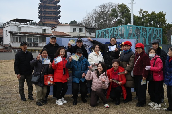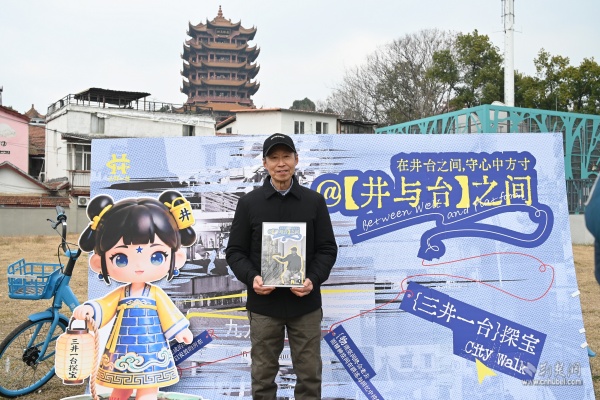 快閃活動(dòng)選址社區(qū)黃鶴游園,抬頭即見(jiàn)巍巍黃鶴樓?,F(xiàn)場(chǎng),82歲守井人謝邦純老人與社區(qū)工作人員、青年學(xué)子一同講述“三井一臺(tái)”的故事,帶領(lǐng)在場(chǎng)居民穿越時(shí)空,觸摸楚王府遺韻與市井生活記憶。