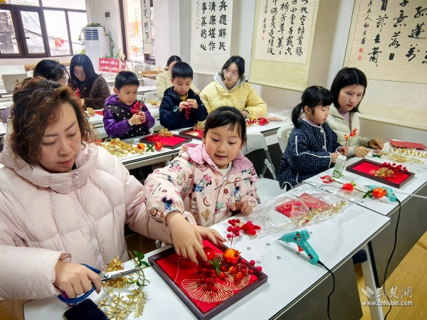 為迎接新春佳節(jié),傳承非遺手工技藝,“吉年添彩·手作年宵花畫框共創(chuàng)會”也在書房內(nèi)熱烈展開?;顒右浴肮P墨書香里尋年味,非遺手作中傳文脈”為主題,吸引了眾多親子家庭與手工愛好者參與。
