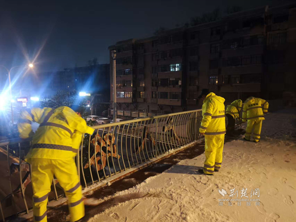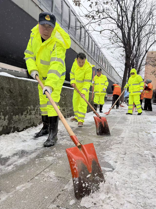 街道應(yīng)急搶險(xiǎn)隊(duì)伍清理積雪。 通訊員供圖