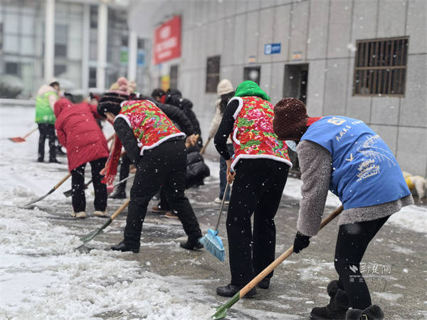 雪情就是命令,保障安全就是責(zé)任。社區(qū)工作人員率先上陣,分工協(xié)作、默契配合,揮舞鐵鍬鏟除路面積雪薄冰。與此同時,轄區(qū)各小區(qū)物業(yè)同步響應(yīng),組織人員對小區(qū)主干道、單元門口、消防通道等重點區(qū)域開展清掃作業(yè),一邊撒布融雪鹽加速冰層融化,一邊在易滑路段鋪設(shè)防滑草墊,用扎實舉措筑牢安全防線。