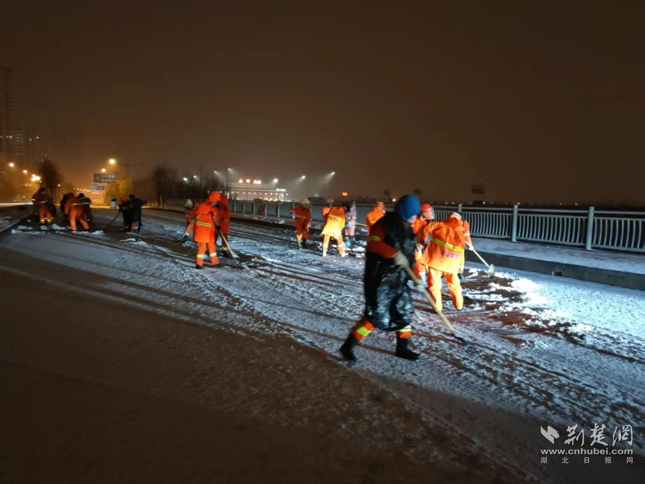 荊楚網(wǎng)(湖北日報(bào)網(wǎng))訊(通訊員姜鵬)1月20日凌晨,武漢市迎來今冬首場降雪。為確保城市道路暢通,武漢經(jīng)開區(qū)軍山街道的環(huán)衛(wèi)工人提前上崗,在嚴(yán)寒中開展掃雪除冰作業(yè),并在交通高峰時(shí)段主動(dòng)幫助受困車輛,三小時(shí)內(nèi)徒手助推近40輛汽車脫困,成為風(fēng)雪中最暖心的“橙色力量”。