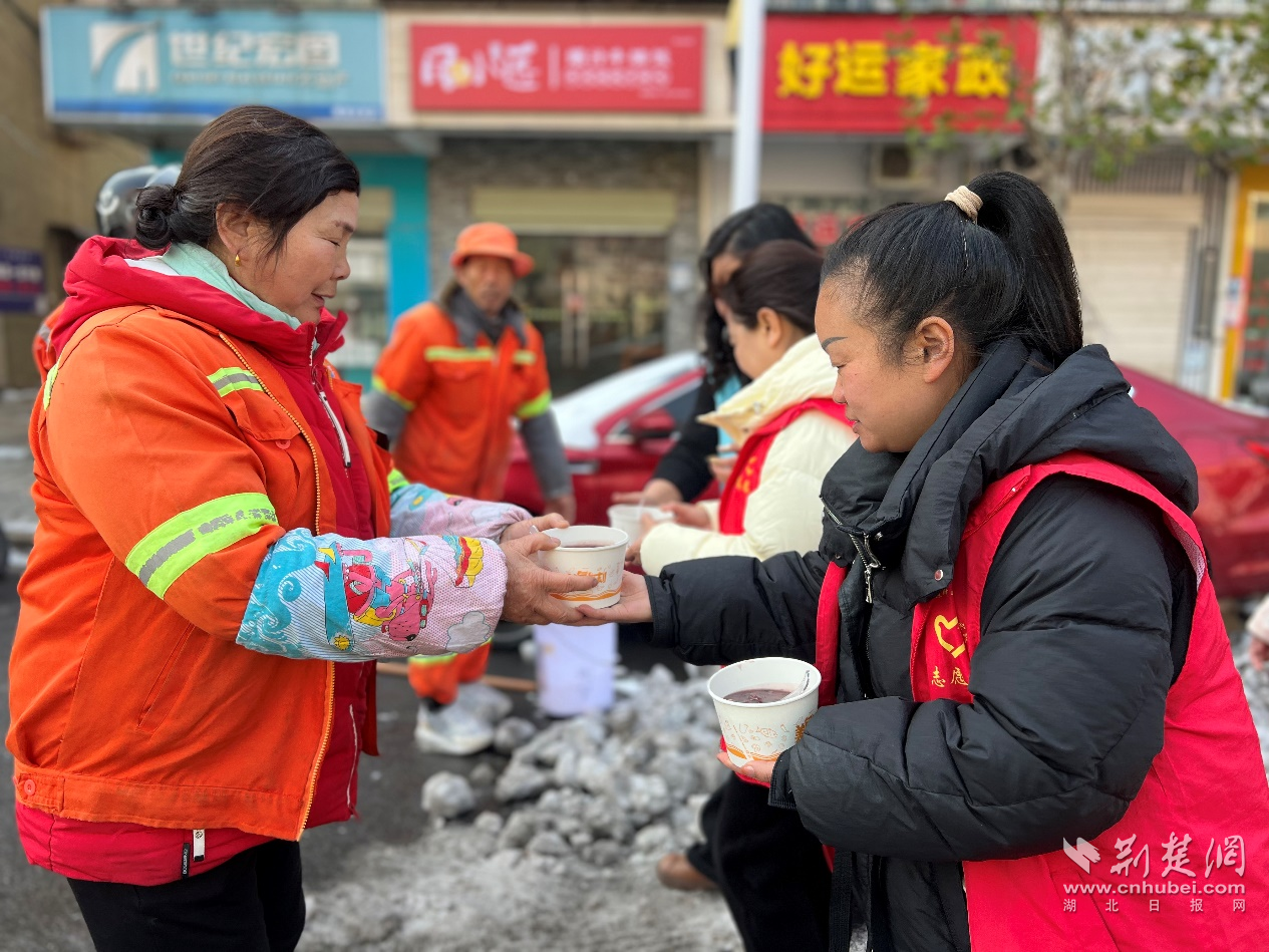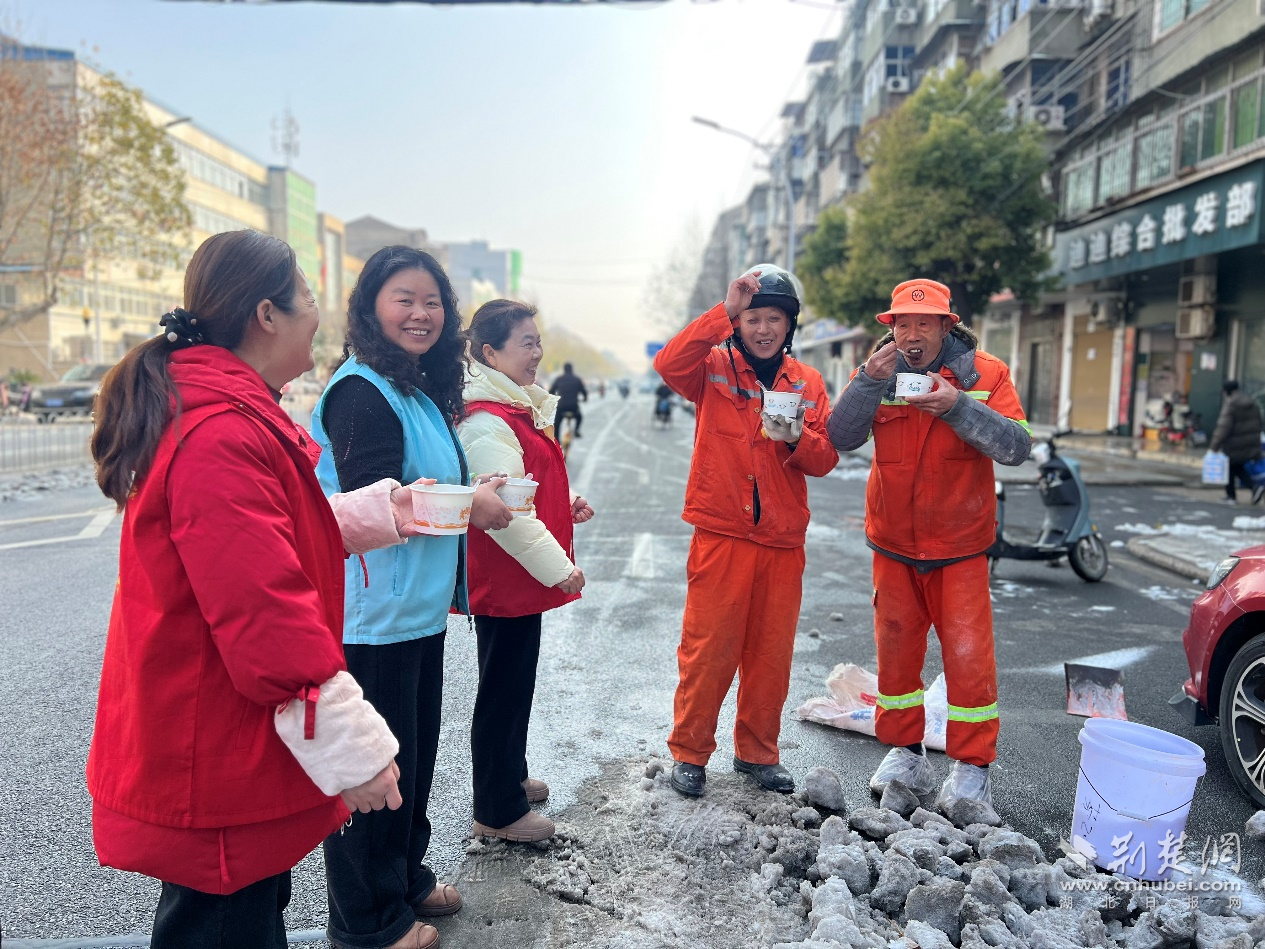 荊楚網(wǎng)(湖北日?qǐng)?bào)網(wǎng))訊(通訊員 吳悠琪)1月23日上午,武漢經(jīng)開(kāi)區(qū)紗帽街道薇湖路社區(qū)工會(huì)愛(ài)心驛站開(kāi)展“品一碗暖心臘八粥,情暖環(huán)衛(wèi)工”冬季送溫暖活動(dòng)。工作人員提前備好食材,經(jīng)過(guò)數(shù)小時(shí)慢火熬煮,將軟糯香甜、營(yíng)養(yǎng)豐富的臘八粥,逐一送到轄區(qū)各路段的環(huán)衛(wèi)工人手中,為寒冬里的一線勞動(dòng)者送上社區(qū)與工會(huì)熱氣騰騰的關(guān)懷。
