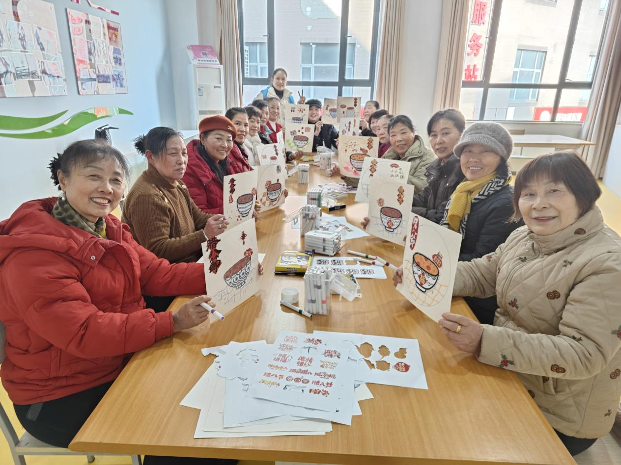 社區(qū)老年人活動(dòng)中心內(nèi),老人們圍坐在一起體驗(yàn)“溫情臘八”手工繪畫,在創(chuàng)作中增進(jìn)鄰里情誼?!昂枚嗄隂]畫過(guò)畫了,今天好像回到了年輕時(shí)候!”74歲的李庭香老人舉著自己剛完成的《臘八團(tuán)圓圖》笑著說(shuō)道。