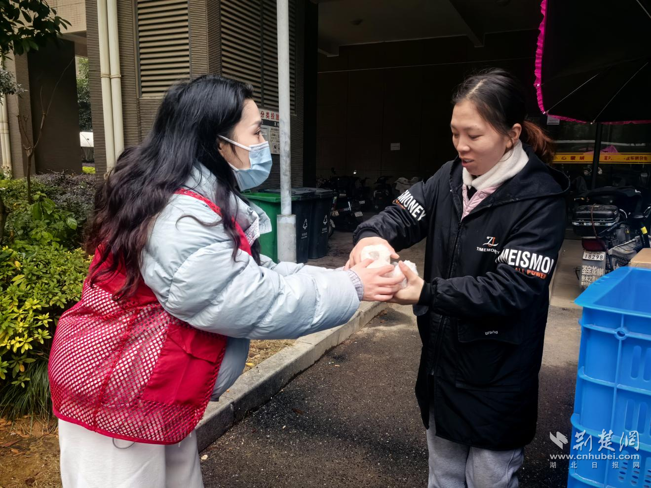 小軍山社區(qū)第一時(shí)間將熱粥送到了戶外工作者手中。通訊員供圖