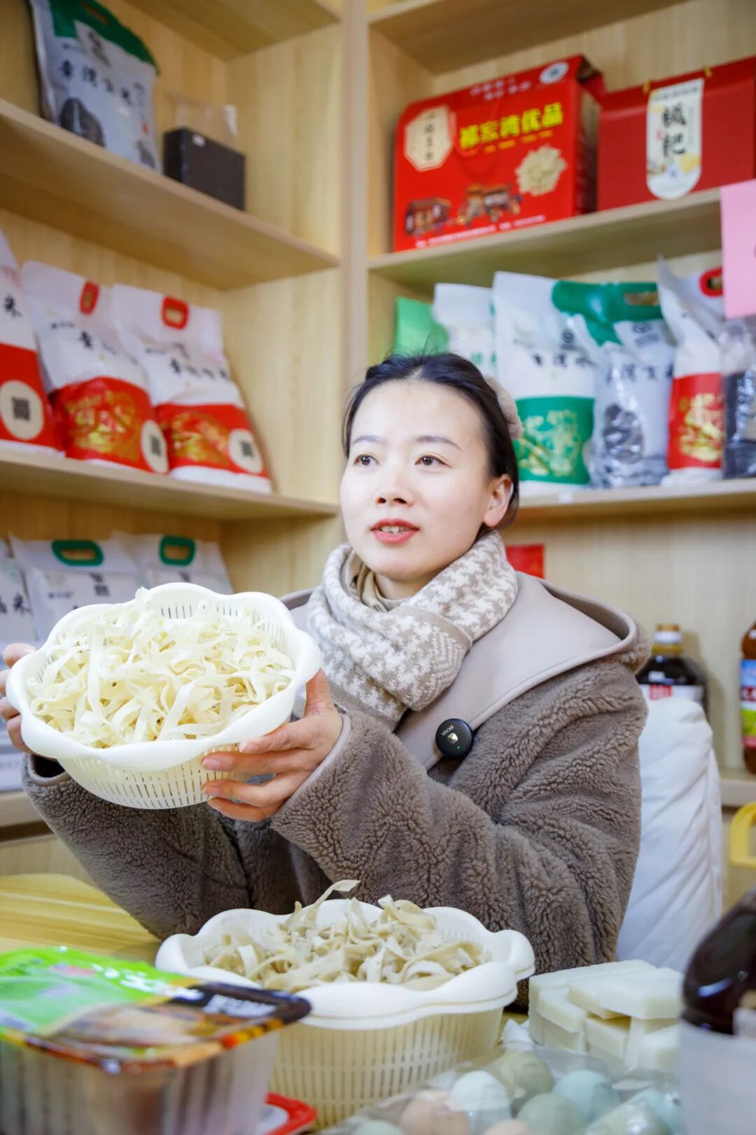 除了優(yōu)質(zhì)選品,在運(yùn)營模式上,基地還采用線上線下雙輪驅(qū)動。線上以“祁家灣優(yōu)品”抖音直播間為主要陣地,組建了由5名村“兩委”干部構(gòu)成的直播團(tuán)隊,定期開展直播帶貨,直播場景覆蓋生產(chǎn)現(xiàn)場等多種實地環(huán)境。線下則通過實體展示館進(jìn)行產(chǎn)品體驗、零售以及面向企業(yè)與社區(qū)的團(tuán)購批發(fā)業(yè)務(wù),形成銷售閉環(huán)。