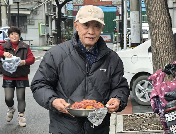 上午10時,長桌上漸漸擺滿了四十余道菜品。李師傅做的紅燒魚寓意“年年有余”,黃師傅的八寶飯?zhí)鹣丬浥?,還有趙師傅拿手的包子,南北風味交融。黃師傅感慨道,以前小區(qū)更像一個單純的居住場所,現(xiàn)在卻真正有了家園的模樣?!皩O子不會做的作業(yè),群里一問就有三、四個鄰居幫忙解答,這種踏實感,千金難買。”