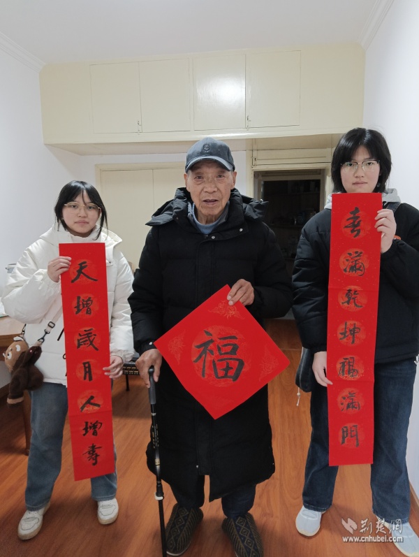 針對(duì)社區(qū)高齡、獨(dú)居老人,志愿者們開展“敲門行動(dòng)”,走進(jìn)“鶴耋安”重點(diǎn)關(guān)愛對(duì)象家中。在88歲的李奶奶家門口,志愿者們將一副寫有“福壽安康”的春聯(lián)認(rèn)真貼好,紅紙金字映亮了老人的笑臉?!澳銈円粊?,家里就熱鬧了,這春聯(lián)比買的還暖心!”李奶奶說道。每到一戶,志愿者們都送上手寫春聯(lián)與“?!弊郑瑤兔ε挪樗婋[患,陪老人聊家常、憶往昔,用陪伴驅(qū)散冬日的冷清。
