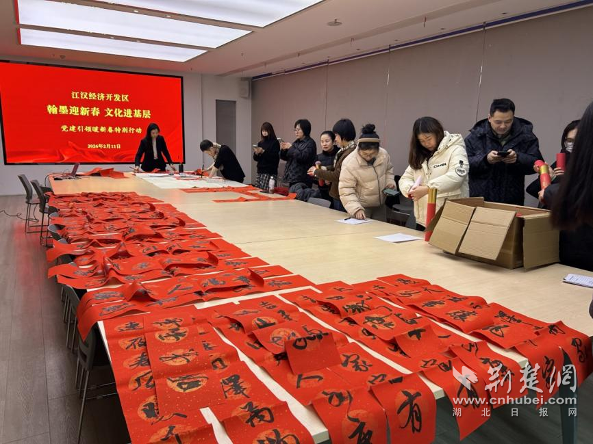 江漢經(jīng)濟(jì)開發(fā)區(qū)開展“翰墨迎新春 文化進(jìn)基層”黨建引領(lǐng)暖新春特別行動(dòng),邀請(qǐng)書法家現(xiàn)場(chǎng)書寫春聯(lián)和“?!弊?,為園區(qū)企業(yè)員工、新就業(yè)群體和流動(dòng)黨員代表送上節(jié)日祝福,在傳承傳統(tǒng)文化中傳遞組織溫暖。