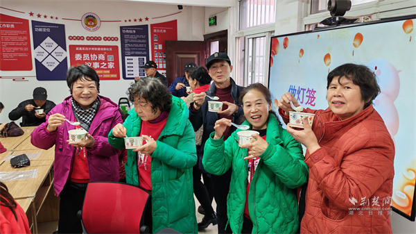 除了共慶歡樂(lè),更有專屬關(guān)懷。長(zhǎng)江紫都社區(qū)聯(lián)合中民萬(wàn)家(武漢)居家養(yǎng)老服務(wù)有限公司舉辦活動(dòng),工作人員和志愿者還專程上門,將滿載心意的暖心湯圓送到行動(dòng)不便的老人家中,傳遞“一個(gè)都不少”的社區(qū)溫情。梅花苑社區(qū)在“湯圓暖心,喜樂(lè)元宵”活動(dòng)中,別出心裁地融入了健康關(guān)懷,邀請(qǐng)口腔醫(yī)院醫(yī)生開展健康講座,為老人們講解春季保健和口腔護(hù)理知識(shí),在傳承民俗的同時(shí),守護(hù)長(zhǎng)輩的健康。佳韻社區(qū)在活動(dòng)中講解元宵節(jié)由來(lái),帶領(lǐng)老人們重溫文化根脈。手工制作燈籠時(shí),大家互幫互助,在協(xié)作中加深情誼。