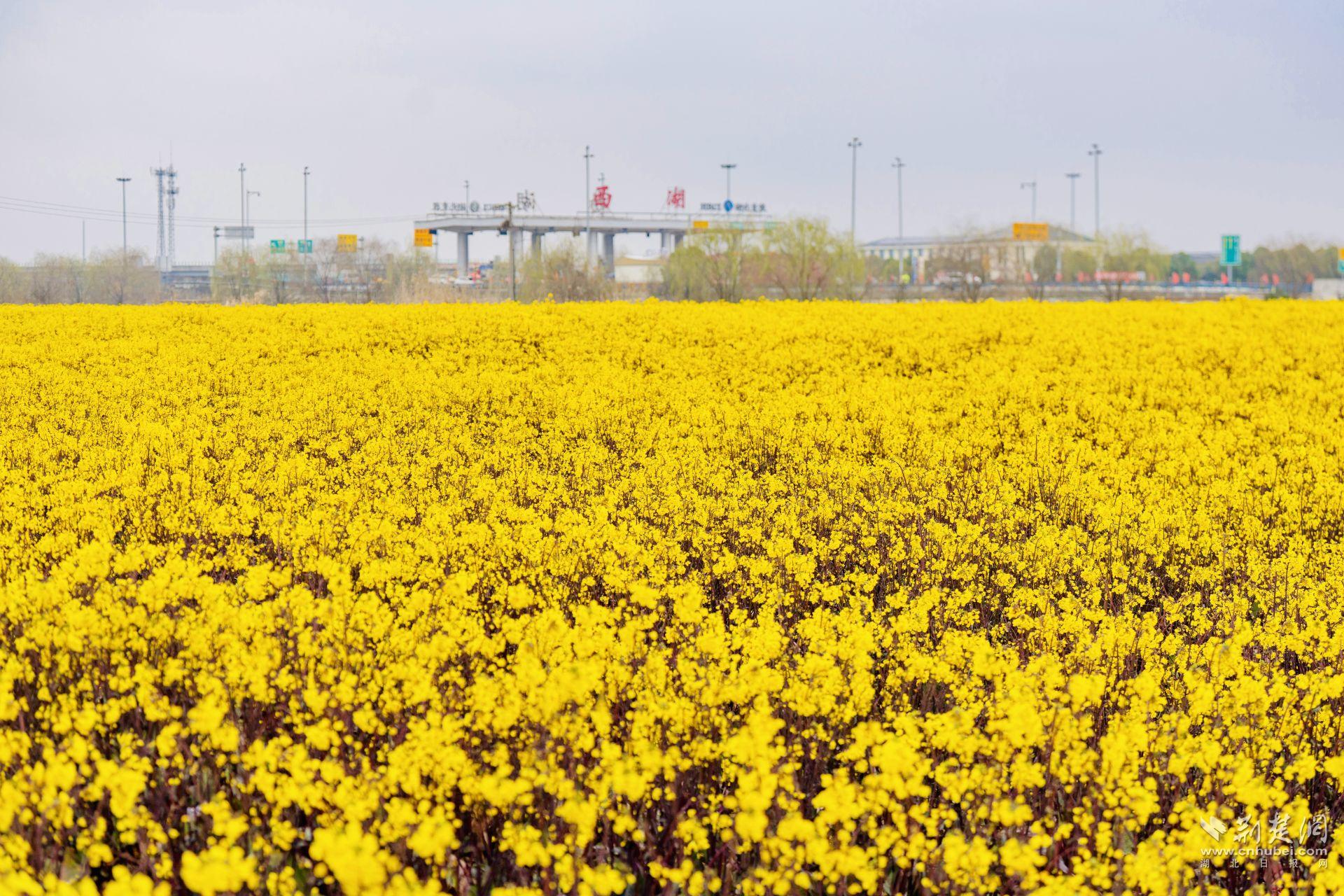 荊楚網(wǎng)(湖北日報網(wǎng))訊(記者 何婧 通訊員 汪玉平 徐卉婷 李玲)“這里的油菜花太壯觀了,一眼望過去全是金燦燦的,就像鋪了一張大地毯!”3月10日上午,駕車經(jīng)過東西湖區(qū)西湖收費站的王女士,被眼前這片突如其來的金色花海深深震撼。她忍不住停下車,和閨蜜一起沖進花田,留下這個春天最美的瞬間。