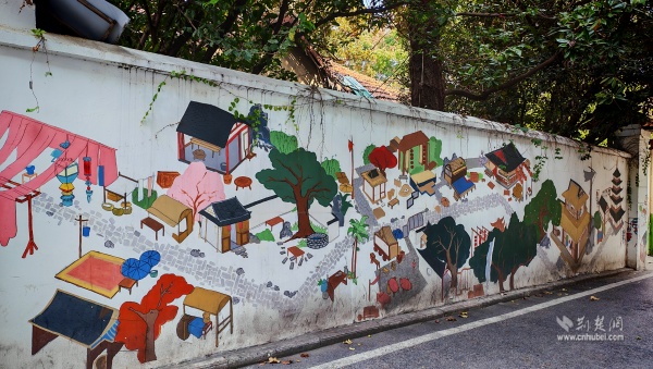 社區(qū)黨委以文化為著力點(diǎn),以“微改造、精提升”為路徑,探索打造古今交融、文旅共生的“宜游”社區(qū)。從九龍井正街到先賢街,藏在居民樓中、電線(xiàn)桿上的明楚王府文化彩繪與武昌古城元素相得益彰,地名文化墻以漫畫(huà)形式述說(shuō)老街往事,生動(dòng)展示社區(qū)文化遺存和老街古巷歷史。各色花卉綠植與武漢主題創(chuàng)意打卡裝置珠玉其間,形成“幾步一景”的游覽體驗(yàn)。