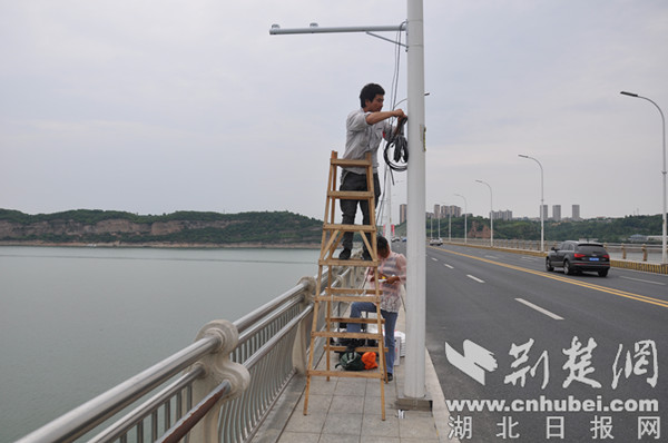 施工人員正在鄖陽漢江大橋安裝人臉識別系統(tǒng),2100米長的漢江大橋?qū)惭b167套防溺水防輕生監(jiān)控系統(tǒng),并實現(xiàn)云聯(lián)網(wǎng)。通訊員 王濤 攝