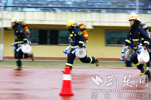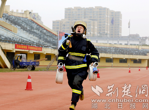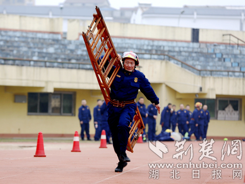 圖為開展60米肩梯跑科目現(xiàn)場。 通訊員 朱燕林攝