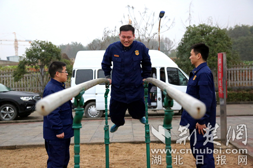 圖為開展單雙杠科目現(xiàn)場。 通訊員 朱燕林攝