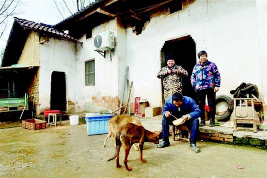 對(duì)宋立新來(lái)說(shuō),湯家咀村一組就像是他的大家庭。他走到哪家,隨時(shí)可以推門(mén)進(jìn)去烤火,拿起水杯喝水,坐一會(huì)兒后又轉(zhuǎn)到下一家。平靜的生活讓他的發(fā)病次數(shù)越來(lái)越少,也許是感念村民們對(duì)自己的好,近些年來(lái)他從來(lái)沒(méi)有在村里打過(guò)人。唯一的問(wèn)題是他經(jīng)常摔壞碗,大家于是給他買了一垛耐摔的搪瓷碗。